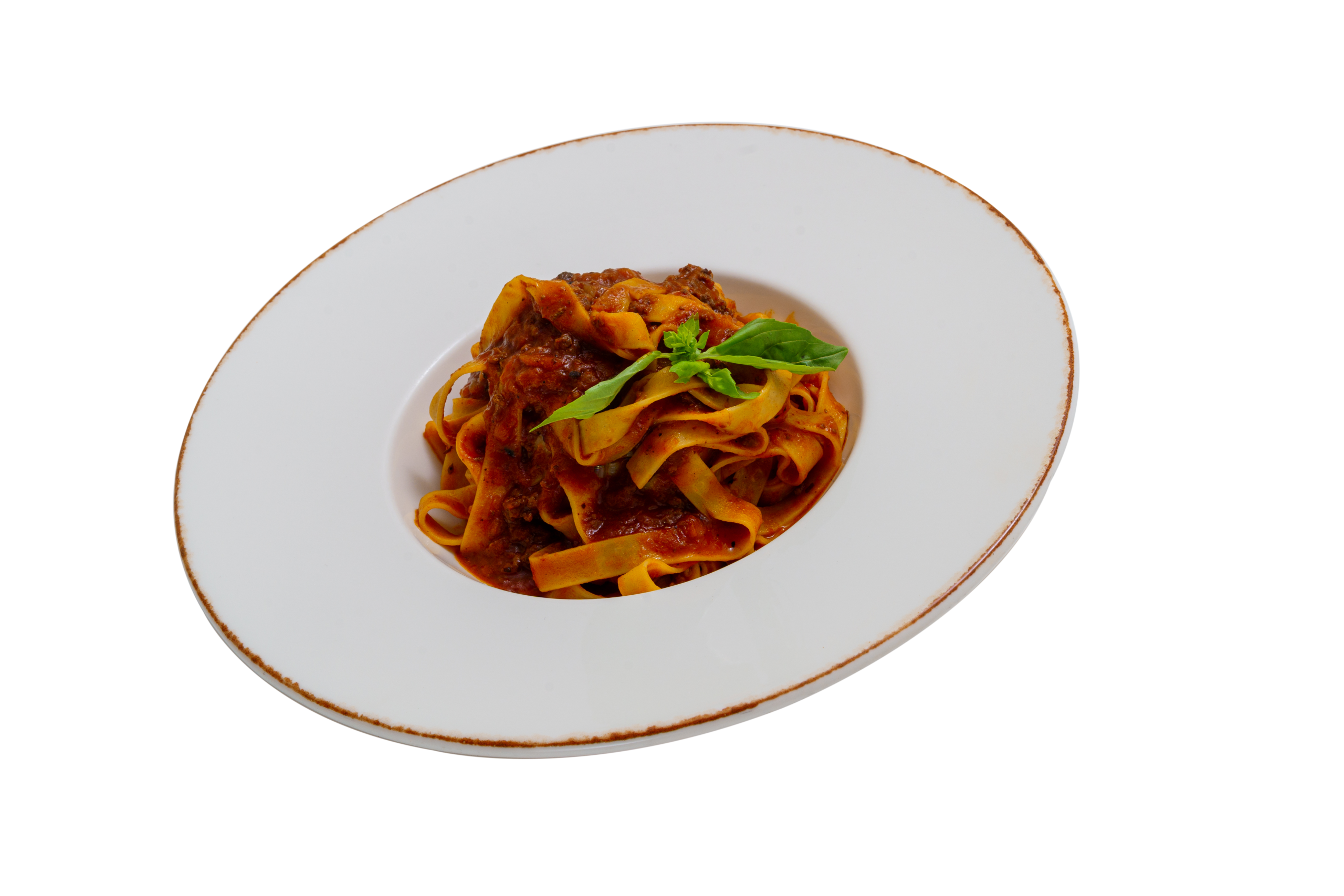 tagliatelle, ground beef, onion, carrots, tomato sauce, parmesan, basil