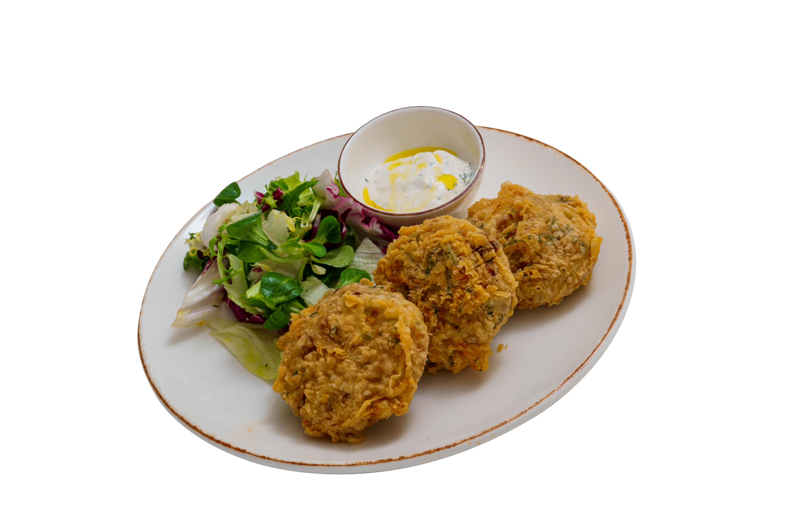 prepared with cheddar cheese, cow's cheese and green onions, served with fresh salads and milk-garlic sauce