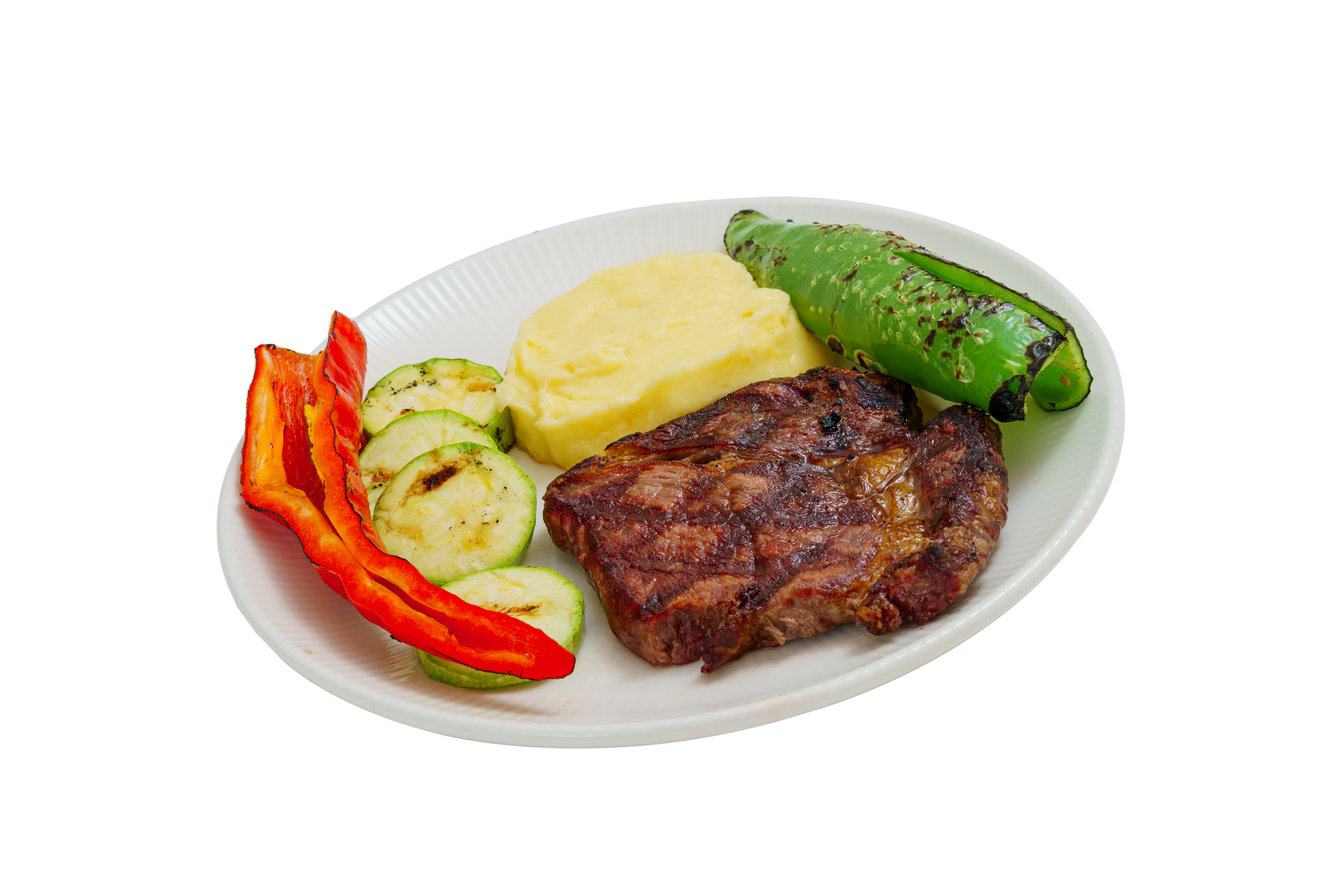 servit cu piure de cartofi și legume la grătar